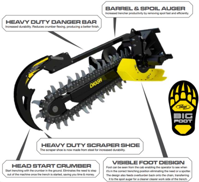 * Please call us with any questions about our trencher attachment skid steer 48 inch deep rentals in Greenfield serving Monterey County & the Salinas Valley.